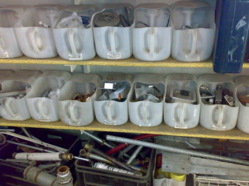 Pas was ik bij een zeer actieve knutselaar in zijn goed uitgeruste hobbywerkplaats. Daar zag ik bovenstaande opslagmogelijkheid. Heerlijk als je veel ruimte ter beschikking hebt zodat je niet alles wat over is van een klus weg moet gooien wegens ruimtegebrek.