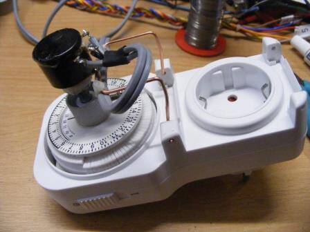 Na wat mislukte experimenten met LDR's maar besloten om het op een elektromechanische manier te gaan proberen met potmeter en klok.