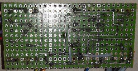 Zo zag de onderkant van deze print er dus uit nadat ik de schakeling vanuit een breadboard experiment had nagebouwd. Lekker simpel en netjes.